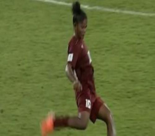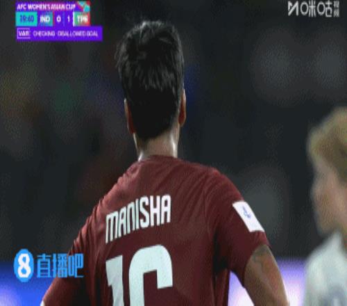 第39分鐘,印度女足前場任意球機會,瑪尼莎·卡利揚打出一腳高質量射門,皮球擊中橫梁下沿彈地后彈回場內。隨后,經過VAR檢查,皮球彈地時已經完全越過門線,印度女足1-1扳平比分。↓
