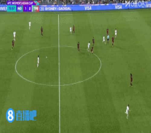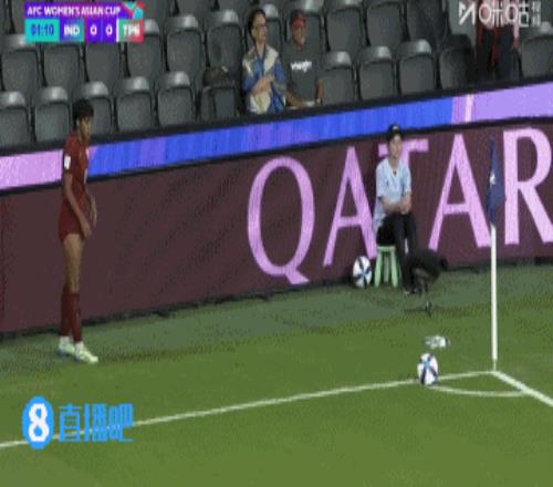 第2分鐘,印度女足險些閃擊,她們利用角球機會完成一次頭球攻門,皮球擊中立柱。↓