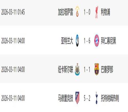 北京時(shí)間3月11日,歐冠淘汰賽首回合比賽,拜仁、馬競(jìng)、利物浦和巴薩等豪門(mén)出戰(zhàn),結(jié)果拜仁和馬競(jìng)分別大勝對(duì)手,而利物浦和巴薩則都沒(méi)能取勝,下周中能否晉級(jí)還有懸念。