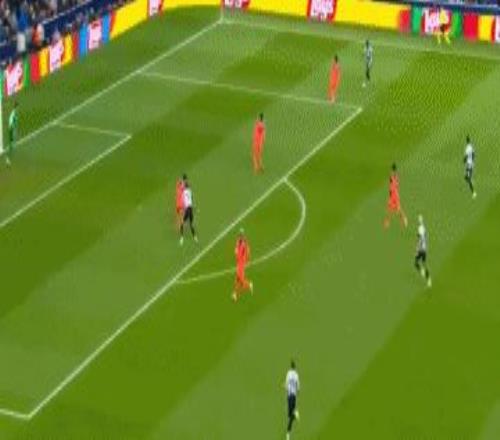 第39分鐘,托納利策動反擊,埃蘭加右路突破傳中,奧蘇拉搶點踢空,皮球滑門而過,巴薩逃過一劫。