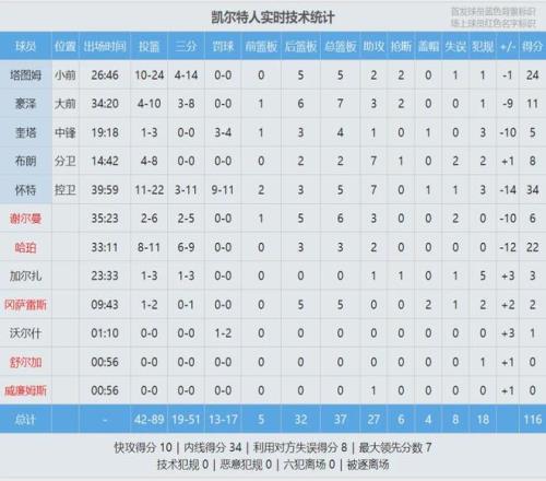 這是塔圖姆復出之后的第三場比賽,此役塔圖姆出戰27分鐘,投籃24中10,三分球14中4,得到24分5籃板2助攻2搶斷1失誤1犯規,末節獨得10分依然無力回天。懷特22投11中,砍下賽季新高的34分,外加5籃板7助攻1蓋帽。