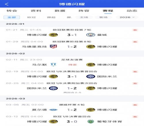 挪超2026賽季的比賽還未開始,今年博德閃耀踢的正式比賽有6場,5場是歐冠,1場是挪威杯。