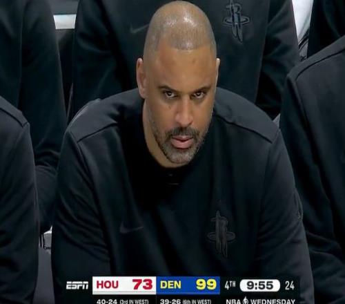 后半段申京三分打鐵,杜蘭特失誤,掘金趁機連續上分,卡佩拉暴扣止血后,布勞恩再中三分球。半場火箭47-53落后。進入第三節,約基奇開始強攻,火箭依靠反擊慢慢迫近比分,但約翰遜和約基奇內外開花,火箭確實防不住。伊森繼續大空位打鐵,穆雷快下反擊,約翰遜轟三分,火箭被拉開兩位數分差。中段火箭連續犯規,穆雷乘勝追擊,布勞恩續上三分球,火箭進攻全面啞火,布勞恩和穆雷帶隊拉開19分分差。后半段阿門艱難單打,約翰遜+布魯斯布朗+小哈達威多點開花,三節打完,火箭69-93落后掘金。