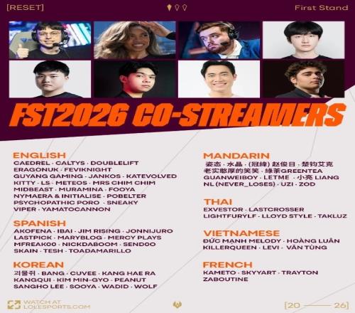 體育播報3月12日宣 LOL官方宣布2026全球先鋒賽官方二路直播名單,具體如下: