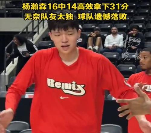 北京時間3月12日,NBA G聯賽常規賽中,被開拓者下放至撕裂之城混音隊的楊瀚森迎來生涯高光,客場對陣圣迭戈快船一役,他帶傷出戰16投14中,以87.5%的超高命中率砍下31分8籃板3助攻1搶斷1蓋帽,刷新個人G聯賽得分紀錄,盡管球隊最終118 比 128惜敗,但他的表現成為全場焦點。
