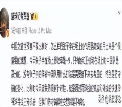 籃球記者賈磊發文點評: