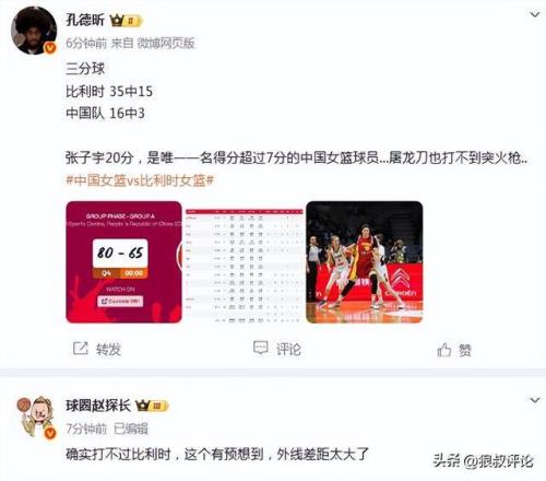媒體人球圈趙探長發文點評:確實打不過比利時,這個有預想到,外線差距太大了。