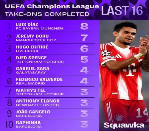 據統計,本場比賽路易斯-迪亞斯還成功過人8次,這是本賽季歐冠單場最高數據,也是他歐冠生涯的新紀錄。