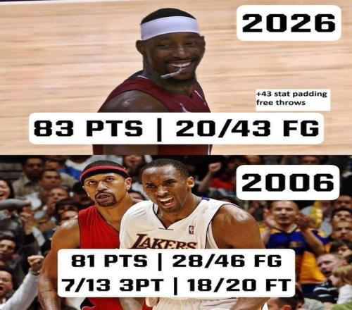 阿德巴約的83分讓人感到惡心,這樣的比賽,這樣的鬧劇,這叫遺臭萬年,沒有人會再去回味這場比賽,毫無精彩可言。但十幾年之后,二十年之后,人們都會拿出科比的81分之戰(zhàn)來回看,因為那是經(jīng)典,這就叫流芳千古。”