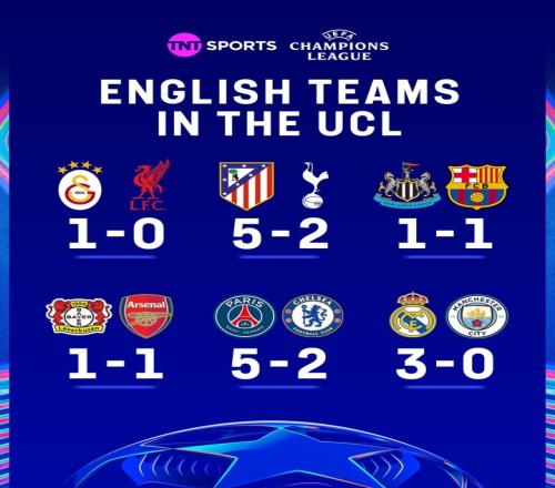 總比分717!英超9隊歐戰16強首回合5負3平僅取1勝,9場凈負10球