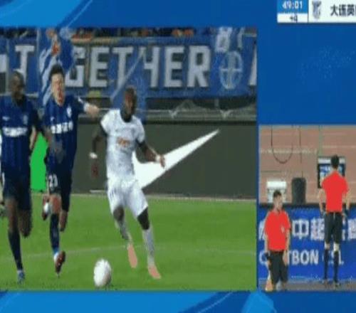 上半場快結束的時候,阿奇姆彭突破到禁區被撞倒,裁判回看視頻后確定是點球!