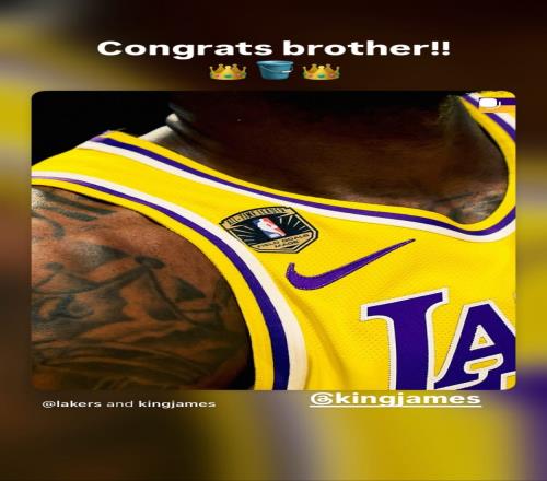 詹姆斯好友保羅·里維拉(《The Shop》的聯合創始人)曬出詹姆斯球衣的特制補丁,并配文:“祝賀你啊大兄弟