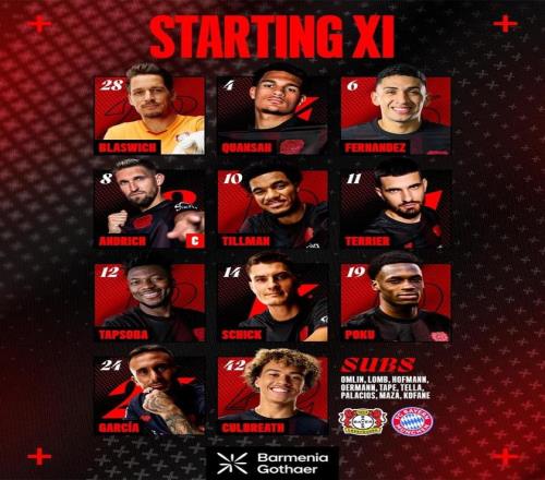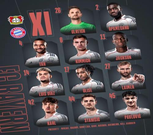 北京時間3月14日22:30,德甲第26輪展開較量,拜仁慕尼黑客場對陣勒沃庫森。賽前雙方首發公布。