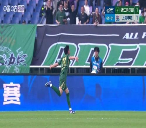 同樣主場作戰的浙江隊迎戰上海申花。上半場開場僅9分鐘,申花閃電戰得手,特謝拉撩射破門幫助球隊1-0領先。隨后薛慶浩先后撲出米特里策、托利奇以及瓜里拉帕的射門,申花半場1-0領先。