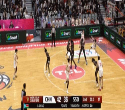 上半場比賽,張子宇上場時間不長,但出場就有作用,內(nèi)線只要出機會基本能得分,根本防不住。