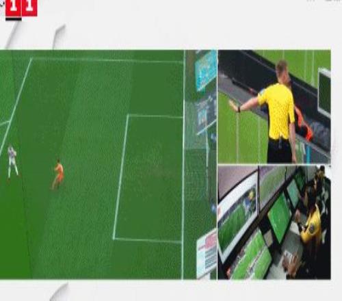 第61分鐘,凱恩逼搶門將成功后破門,VAR確認后拜仁本場第二次因手球進球無效