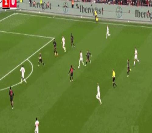 第6分鐘,阿萊士-加西亞射門經塔折射后破門,拜仁開局丟球0-1落后藥廠