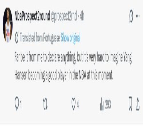 美球迷:我絕不會發表任何言論,但此刻很難想象楊瀚森能成為 NBA 的優秀球員。