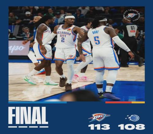 北京時(shí)間3月18日上午,NBA常規(guī)賽:雷霆113-108擊敗魔術(shù),豪取9連勝。此役過(guò)后,雷霆戰(zhàn)績(jī)來(lái)到54勝15負(fù),提前13場(chǎng)鎖定季后賽。雷霆成為本賽季第一支殺進(jìn)季后賽的球隊(duì)。雷霆本賽季跟魔術(shù)交手兩次,雷霆成功完成雙殺!