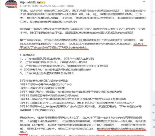 賽后媒體人怒批杜鋒身兼數職,頻繁參加活動犧牲球隊備戰。杜鋒目前擔任了五個職務:廣東宏遠隊男籃主教練;廣東省籃球協會會長;廣東省二沙體育訓練中心,籃排服務中心主任(正處級);2026粵BA(廣東城市籃球聯賽)競賽組副組長;廣東省全運會籃球項目總協調人。