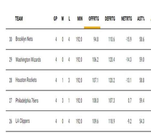 快船這一波四連敗,進攻效率109.6聯盟倒數第四,防守效率118.9聯盟倒數第十,凈效率值-9.2聯盟倒數第七,快船隊真是一夜回到解放前。