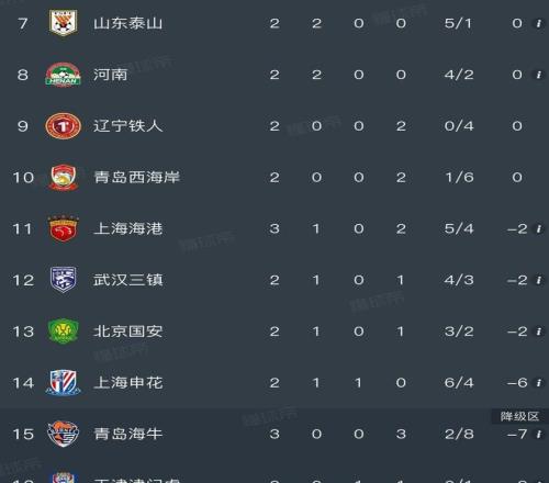 處境最為堪憂的是青島海牛,三戰全負,雖打入兩球,卻狂丟八球,在積分榜底部深陷泥沼。