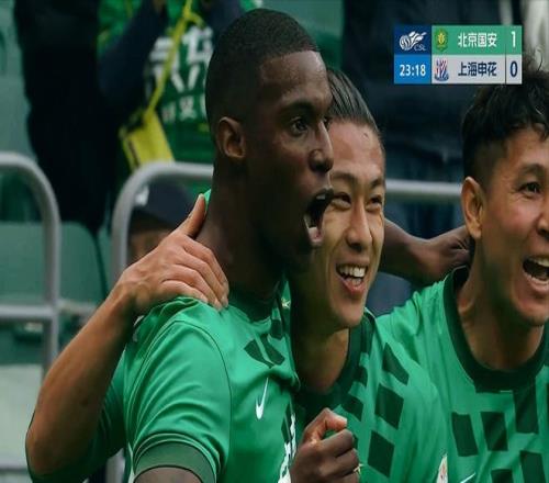 開場之后,雙方沒有過多的試探,直接展開了針尖對麥芒的較量,米內羅的邊路連番突破、張玉寧近距離的頭球,將對抗和強度拉滿。經過連續的中場逼搶之后,第23分鐘,恩科洛洛送出精準傳中,后點的張玉寧無人盯防,輕松頂進球門,1:0!北京國安率先取得領先。