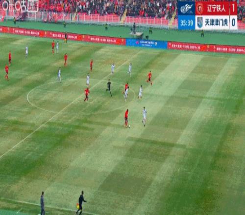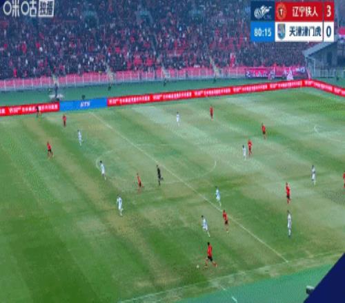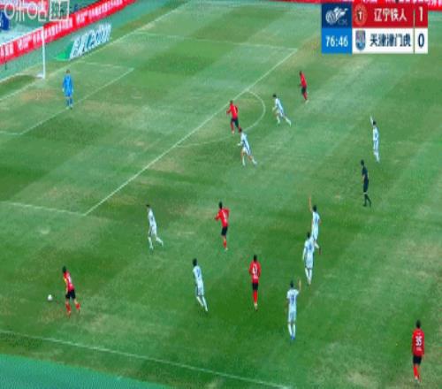 第77分鐘,邦本宜裕傳中,安以恩原地擺腿兜射破門,遼寧鐵人2-0!