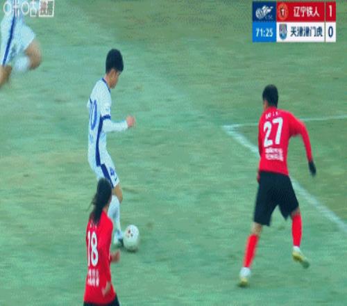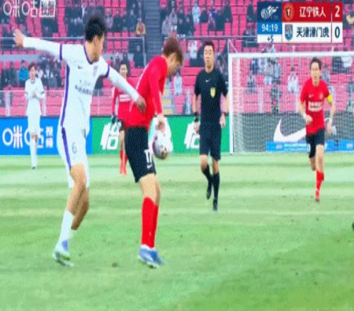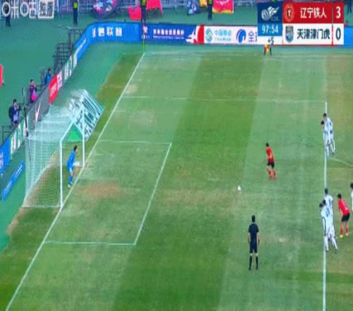 第90+8分鐘,王獻鈞拉拽田玉達吃到紅點套餐,邦本宜裕勺子點球破門,遼寧鐵人3-0!
