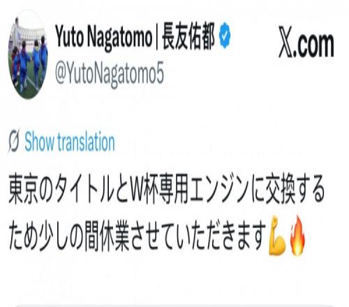 長友佑都在社媒轉發了東京FC對自己傷情的報道,并配文寫道:“要去更換幫東京FC奪冠和世界杯專用的引擎了,請讓我短暫休息片刻。”