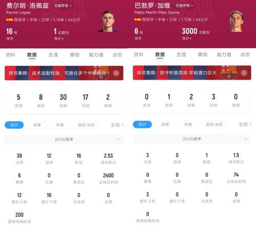 而費爾明則從替補一步步成長為巴薩的主力輪換,本賽季費爾明代表巴薩出戰38場比賽,12球16助均創下生涯新高,他的德轉身價也漲到1億歐元。