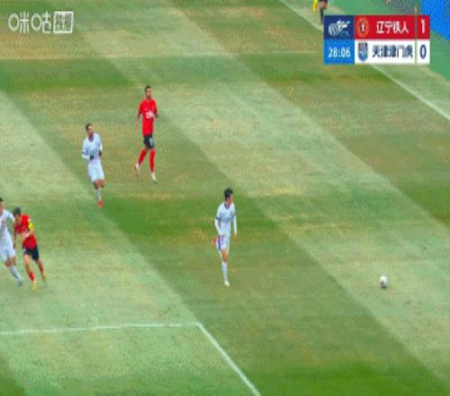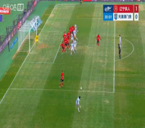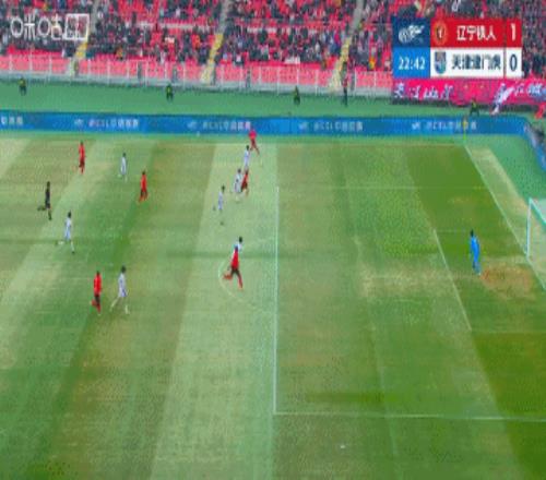上半場補時3分鐘。半場戰罷,遼寧鐵人1-0天津津門虎。