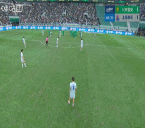 體育播報03月21日宣 中超第3輪,北京國安vs上海申花。比賽第68分鐘,陳晉一任意球直接破門,申花1-1客場扳平國安!這是申花本場比賽的第一腳射正。