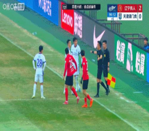 比賽最后時刻,田玉達被王獻鈞拉倒,裁判第一時間示意球員起身,遼寧鐵人主帥李金羽和球員均抗議。隨后裁判在VAR的提示下,去場邊觀看,判罰紅點套餐!
