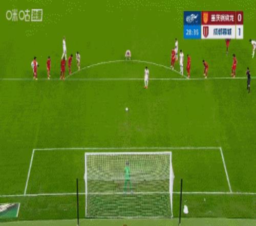 第27分鐘,韋林頓造點,韋世豪點射破門,蓉城10領先銅梁龍