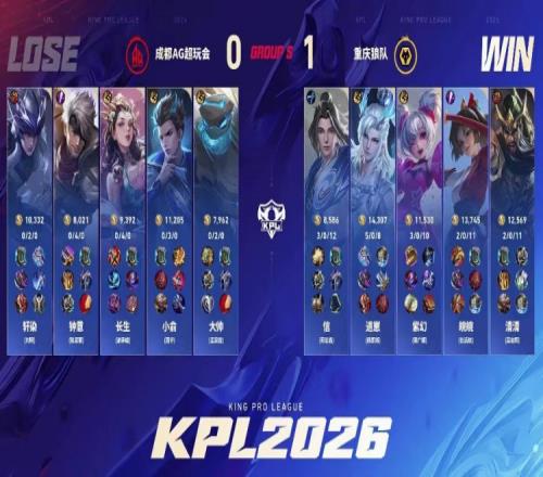 第一局:重慶狼隊(duì) 1-0 成都AG超玩會(huì)