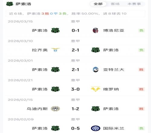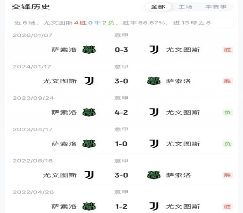 尤文暫以53分排名第五,落后第四1分。薩索洛38分排名第11。賽季首次交手中,尤文客場(chǎng)3-0戰(zhàn)勝薩索洛。