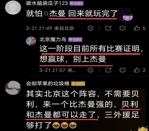 昨晚賽后杰曼居然被北京球迷開會,他們說昨晚贏球正是缺了杰曼,若是他在應該贏不了比賽。為什么這樣說?因為杰曼在的話,主帥許利民肯定是用杰曼主打末節,效果肯定沒有國產雙后衛好。球迷說,“第四節真的不用死磕杰曼 ,上斯佩爾曼可以給兩位拉開空間他們就打得更舒服了”、“這一階段目前所有比賽證明想贏球,別上杰曼”。這場勝利也找到了膿包,球迷說“膿包找到了,杰曼!”。甚至有些球迷主張裁掉杰曼:“其實北京這個陣容,不需要貝利,來一個比杰曼強的,貝利和杰曼都可以走了,三外援足夠打了”。