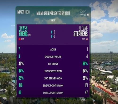 體育播報03月22日宣 WTA1000邁阿密站單打第二輪,鄭欽文2-0戰勝斯蒂芬斯,晉級32強。接下來,鄭欽文將靜候凱斯和魯塞之間的勝者。 ???