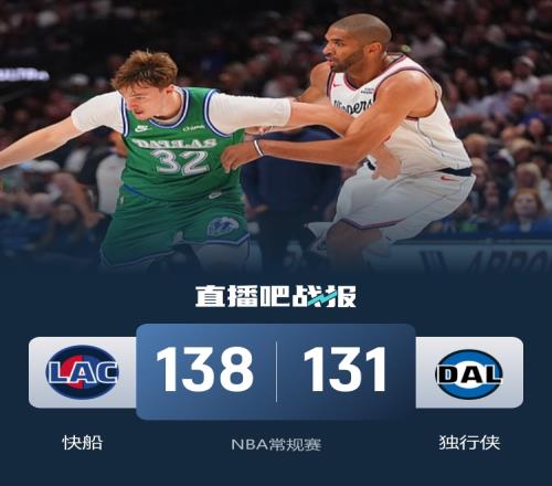 開(kāi)場(chǎng)后弗拉格表現(xiàn)非常強(qiáng)勢(shì)頻頻拿分,但快船多點(diǎn)開(kāi)花也緊咬比分,兩隊(duì)連續(xù)打成平手,獨(dú)行俠外線接連命中三分逐漸取得領(lǐng)先,克萊替補(bǔ)登場(chǎng)也是連飚三分。第二節(jié)倫納德和加蘭輪番帶隊(duì)追分,獨(dú)行俠總能及時(shí)回應(yīng),兩隊(duì)陷入拉鋸戰(zhàn),半場(chǎng)過(guò)后獨(dú)行俠領(lǐng)先9分。易邊再戰(zhàn),加蘭和大洛聯(lián)手開(kāi)炮幫助快船打出13-3的開(kāi)局一舉反超比分,倫納德也開(kāi)始發(fā)力,快船一度領(lǐng)先到10分。此后獨(dú)行俠做出回應(yīng)掀起反撲將比分追上。末節(jié)決戰(zhàn),快船外線接連開(kāi)火保持領(lǐng)先優(yōu)勢(shì),但是獨(dú)行俠始終也是緊追不舍,并且利用加蘭的失誤一度反超,倫納德拋投打進(jìn)將比賽拖入加時(shí)。加時(shí)賽中快船一鼓作氣打出11-0建立領(lǐng)先,獨(dú)行俠未能再追上比分,最終快船加時(shí)138-131擊敗獨(dú)行俠結(jié)束4連敗,獨(dú)行俠遭遇3連敗。