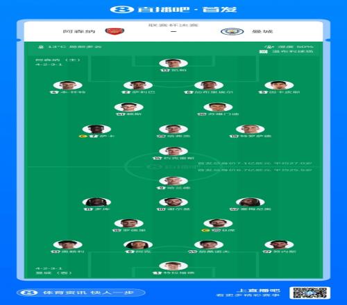 阿森納方面,薩卡、哈弗茨領(lǐng)銜先發(fā),凱帕出任首發(fā)門將,埃澤傷缺;曼城方面,哈蘭德、謝爾基、塞梅尼奧先發(fā),特拉福德出任首發(fā)門將,魯本·迪亞斯傷缺,格伊因杯賽資格限制無(wú)法登場(chǎng)。