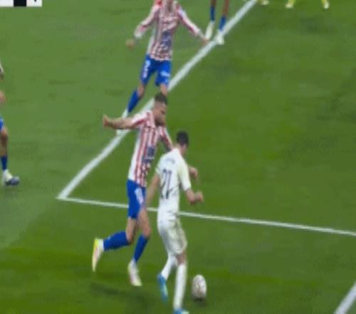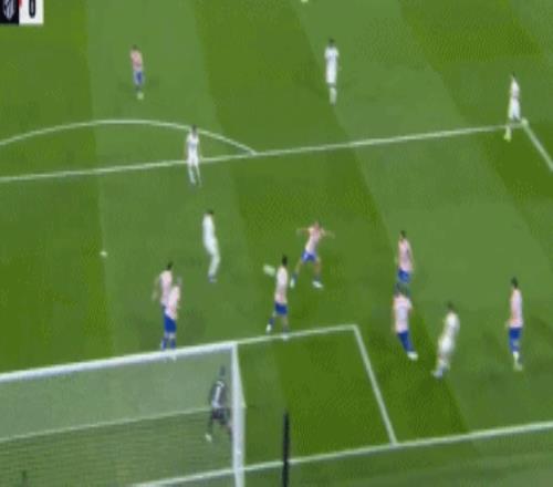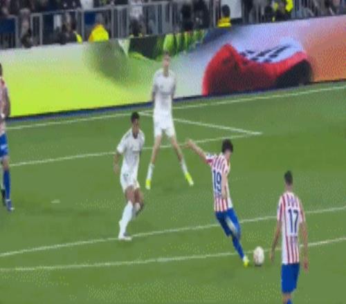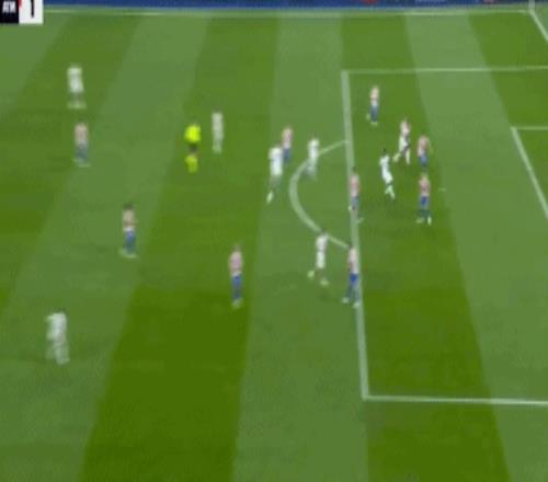 第33分鐘,格列茲曼精準(zhǔn)長(zhǎng)傳策動(dòng)反擊,西蒙尼腳后跟妙傳,盧克曼單刀推射破門,馬競(jìng)1-0皇馬。