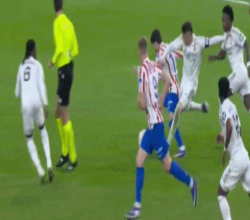 比賽開打僅3分鐘,皇馬就通過威尼修斯的左路強(qiáng)突制造險(xiǎn)情,隨后巴爾韋德的暴力遠(yuǎn)射擊中立柱。伯納烏的節(jié)奏從開場(chǎng)就被拉到極限,但真正先破門的卻是馬競(jìng)。