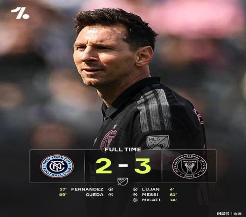 美職聯第5輪,邁阿密國際客場3-2險勝紐約城,終結各賽事3連平,距榜首3分。盧揚3分鐘首開紀錄,梅爾考任意球扳平,梅西兩度中框,奧耶達反超比分,梅西任意球破門追平+生涯第901球,米凱爾頭球建功。