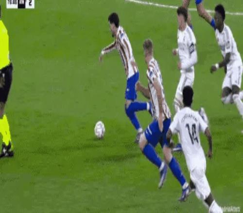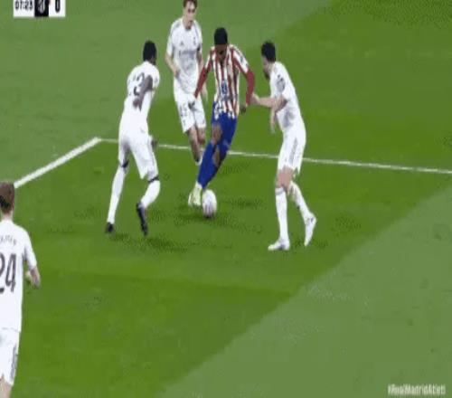 第33分鐘,馬競領(lǐng)先了。床單軍團(tuán)一系列眼花繚亂的配合,撕開了皇馬的防線。團(tuán)隊(duì)之間嫻熟的傳遞,最后由盧克曼破門。1-0!