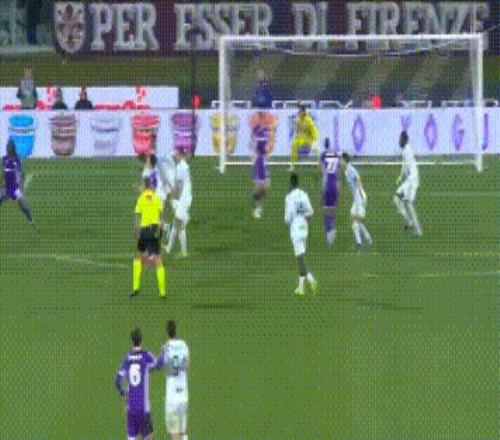 當時國米在前場瘋狂逼搶,佛羅倫薩解圍失誤,巴雷拉右路傳中,最終埃斯波西托回頭望月,把球頂進大門,國米1-0領(lǐng)先。