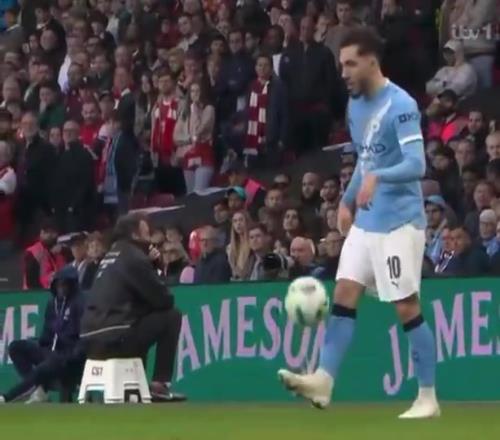 比賽第68分鐘,彼時(shí)曼城已經(jīng)取得了2-0的領(lǐng)先優(yōu)勢(shì),謝爾基在邊路拿球時(shí)直接顛起了球,但他的下一次拿球就被本·懷特兇狠放翻在地。轉(zhuǎn)播鏡頭清晰地捕捉到,曼城主帥瓜迪奧拉在場(chǎng)邊無(wú)奈地?fù)u起了頭。