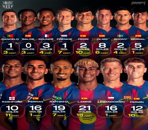 世體統計巴薩球員傳射數據:亞馬爾21球15助居首,費爾明第二