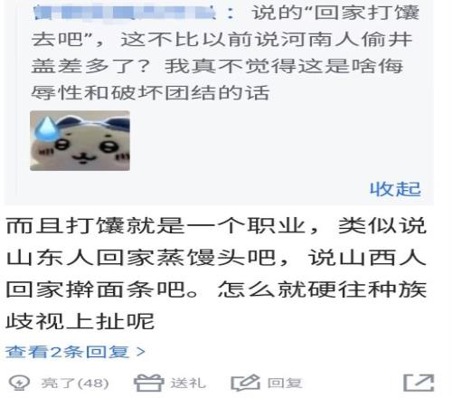 另一部分球迷則搬出了趙睿,認為李祥波這件事和趙睿那次相比,并沒有想象中的那么嚴重:打馕就是一個職業,類似說山東人回家蒸饅頭吧,說山西人回家搟面條吧。怎么就硬往種族歧視上扯呢?這都是趙睿惹的禍!