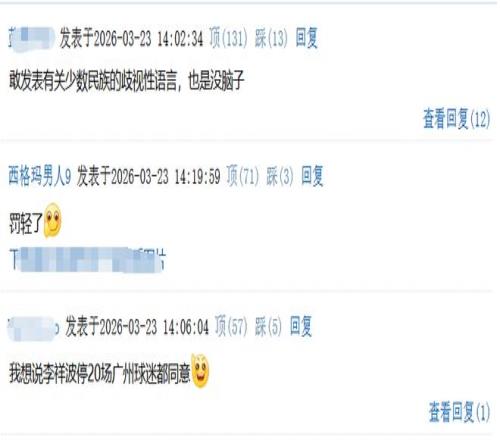 而對于這次處罰,球迷們也給出了不同的看法,評論區主要分為兩派,一部分球迷認為對李祥波處罰還是太輕了:敢發表有關少數民族的歧視性語言,也是沒腦子;我想說李祥波停20場廣州球迷都同意;罰的太輕了這不是第一次都已經第二次了還這么給人家撓癢癢還會有下次的。
